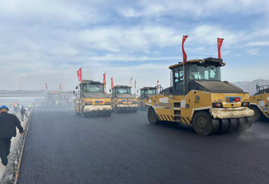 田間的風醇厚柔潤,壓路機上隨風飄搖的旗幟迸發(fā)出一陣陣吶喊聲,為道路瀝青中面層鋪筑加油助威。
