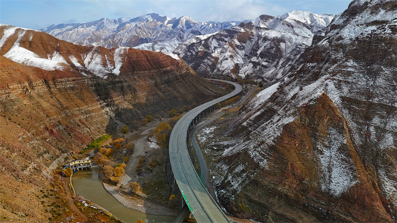 冬日的西營河12號特大橋宛如一條銀龍,蜿蜒于銀裝素裹的山巒之中。路,走向更遠的遠方。