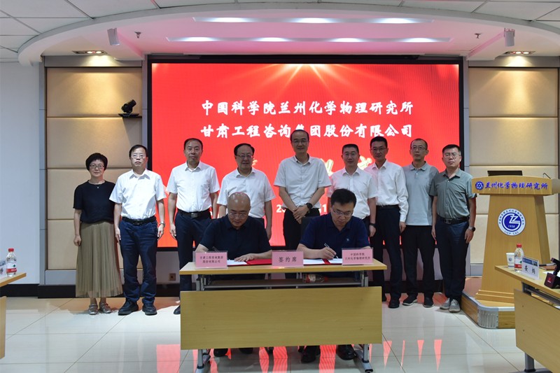 8月15日,甘肅工程咨詢集團黨委書記、董事長張佩峰一行到訪中國科學院蘭州化學物理研究所,與所長周峰座談交流并簽訂科技合作協議。協議的簽訂,標志著雙方合作進入新階段。蘭州化物所黨委委員張永勝,集團公司副總經理曹慶,黨委委員、副總經理白鑫參加。