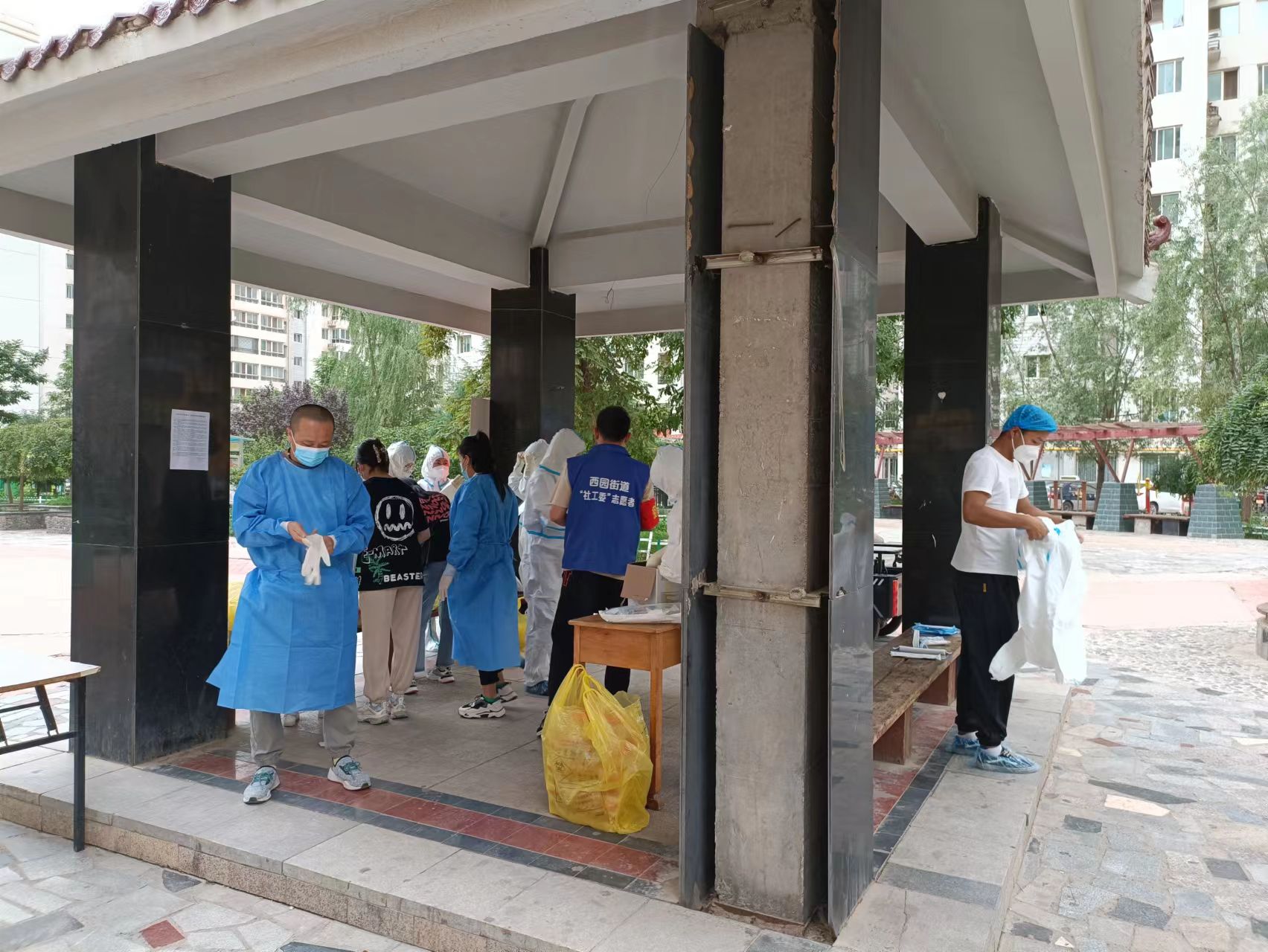 除了報(bào)名下沉社區(qū)的人外,還有一些干部職工主動(dòng)聯(lián)系社區(qū)參加到了志愿服務(wù)者的隊(duì)伍中來。對(duì)規(guī)劃設(shè)計(jì)院第十三黨支部書記、建筑設(shè)計(jì)九分院院長路文理和檢測分院的張文慶來說,志愿工作早已輕車熟路,這已經(jīng)是他們第三次參加社區(qū)疫情防控志愿服務(wù)了。本輪疫情發(fā)生后,他們再次逆行而上,義無反顧地沖到疫情防控“第一線”。