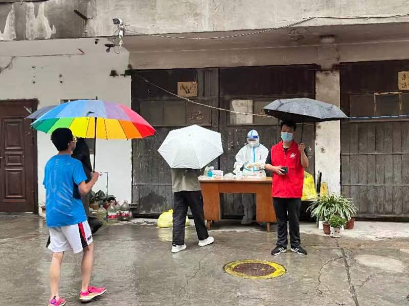 在高風(fēng)險(xiǎn)社區(qū),規(guī)劃設(shè)計(jì)院第十六黨支部入黨積極分子劉偉正在執(zhí)行“封門”任務(wù)?!耙唤拥酱_診通知,我們就要連夜對(duì)密接住戶施行管控措施,工作時(shí)間是24小時(shí)隨時(shí)待命,防護(hù)服穿脫太麻煩,累了我找地方靠一會(huì)兒就行?!睂O偉略帶疲倦地說道。高風(fēng)險(xiǎn)區(qū)意味著與病毒更近距離的接觸,對(duì)志愿者的規(guī)范操作要求也更加嚴(yán)格。每一次敲門、登記、核對(duì)人數(shù)、掃碼做核酸等看似簡單的流程,他都會(huì)在腦海里反復(fù)演練。突然的封門,會(huì)有一些居民鬧情緒,面對(duì)激烈的言辭,他總能耐心安撫,爭取居民對(duì)防控措施更多的理解和支持??臻e時(shí),他會(huì)拎著大袋小袋,給住戶送些必備物資,提醒他們做好防護(hù),做些力所能及的事情。勇者不孤,劉偉僅僅是這支隊(duì)伍中的一分子,還有像武利平、楊致遠(yuǎn)、姚友龍、劉澤靖、孔利兵、巨斌、楊一、劉偉、滿子熠、李文磊、仲乃河、蘇曉文、魏翔等像他一樣的志愿者,正在社區(qū)疫情防控一線,默默地貢獻(xiàn)著自己的力量。他們有的是企業(yè)中層“一把手”,有的是建筑師,有的是規(guī)劃師,有的是財(cái)務(wù)管理人員……,但穿上白色的防護(hù)服、換上紅色的馬甲,他們就有了一個(gè)共同的名字——疫情防控志愿者。
