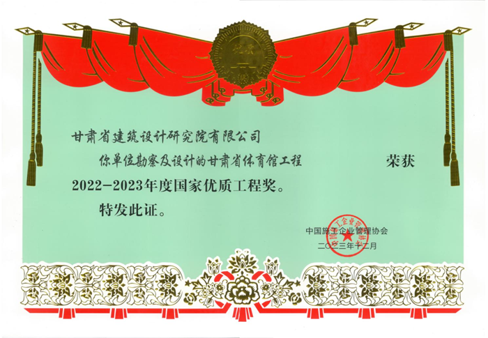 近日,從中國施工企業(yè)管理協(xié)會傳來好消息,由甘肅省工程勘察設(shè)計大師、省建筑設(shè)計院總建筑師馮志濤帶領(lǐng)團(tuán)隊(duì)設(shè)計的甘肅省體育館榮獲“2022-2023年度國家優(yōu)質(zhì)工程獎”榮譽(yù)稱號。