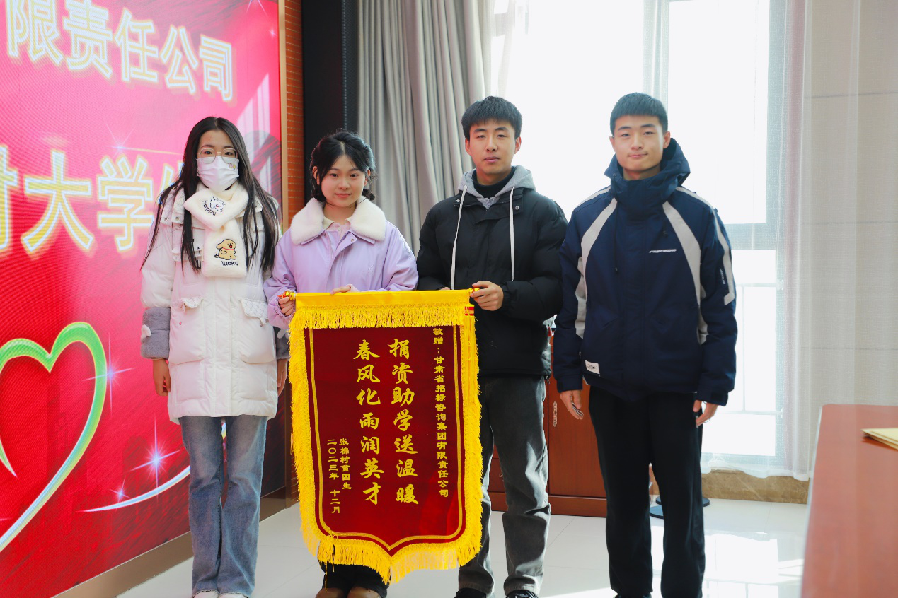 省招標(biāo)咨詢集團(tuán)資助的天水張家川縣張棉驛鄉(xiāng)張棉村蘭大受助學(xué)生代表,到省招標(biāo)咨詢集團(tuán)送上錦旗和感謝信,對(duì)公司長期以來資助、關(guān)心他們學(xué)業(yè)的善舉表達(dá)聯(lián)名感謝。