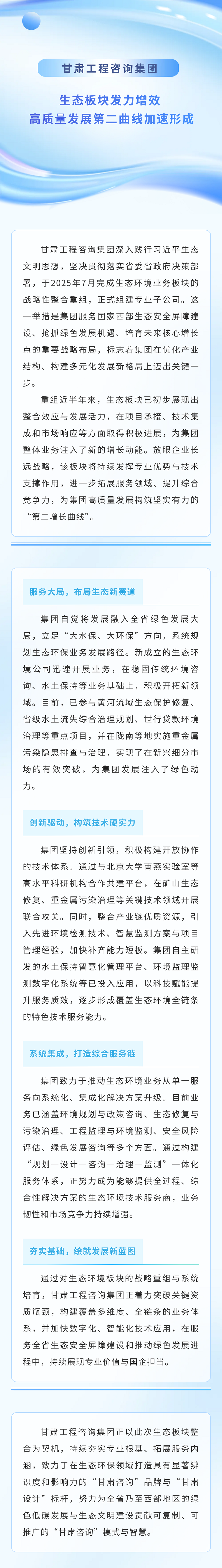 甘肅工程咨詢集團(tuán):生態(tài)板塊發(fā)力增效 高質(zhì)量發(fā)展第二曲線加速形成