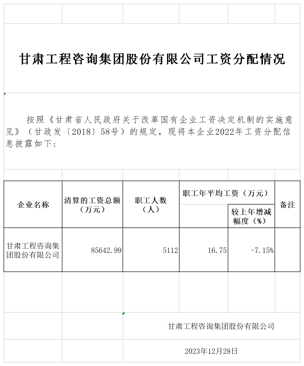 甘肅工程咨詢集團股份有限公司董事、監(jiān)事、高級管理人員2022年度薪酬情況及甘肅工程咨詢集團股份有限公司工資分配情況