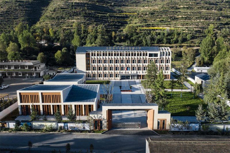 中國海外溫家河希望小學項目綜合考量環(huán)境、功能、空間、外立面等因素,呈現(xiàn)了當?shù)貍鹘y(tǒng)民居的二合院樣式,充分展現(xiàn)了臨夏特色的建筑藝術(shù)特征。