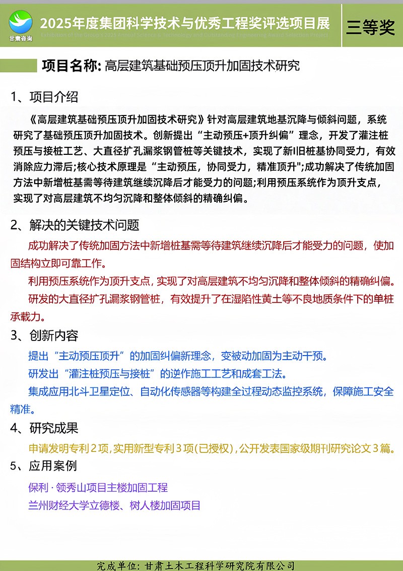 甘肅工程咨詢(xún)集團(tuán)首屆科學(xué)技術(shù)與優(yōu)秀工程獎(jiǎng)獲獎(jiǎng)項(xiàng)目系列展③