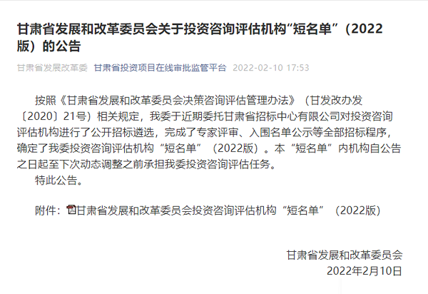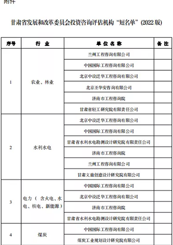 近日,省發(fā)改委公布2022年進入省發(fā)改委投資咨詢評估機構企業(yè)名單,甘肅省水利水電勘測設計研究院有限責任公司成功入圍三個行業(yè)板塊。