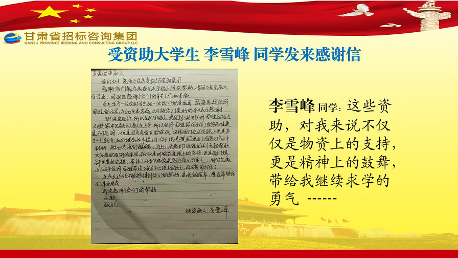 甘肅省招標(biāo)咨詢(xún)集團(tuán)有限責(zé)任公司心系困難學(xué)子 真幫實(shí)助顯真情