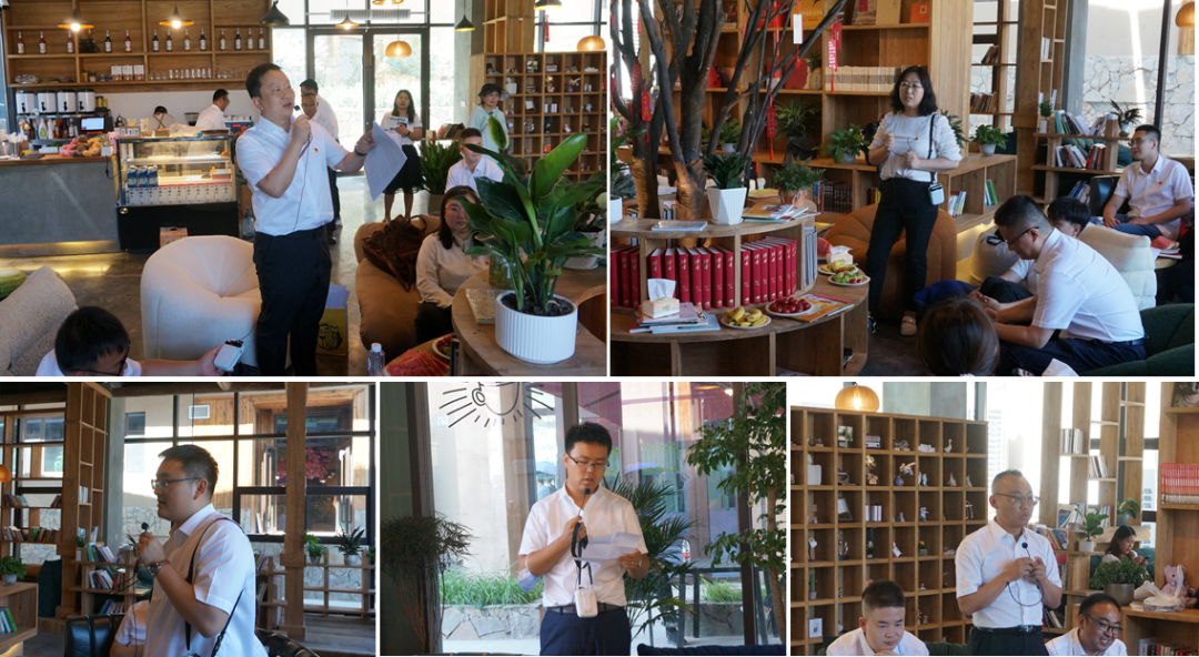 在棲云小鎮(zhèn)書吧開(kāi)展的“一心永向黨,喜迎二十大”的交流研討會(huì)上,羅堯同志代表第五黨支部作主題發(fā)言。他首先對(duì)參加本次主題黨日活動(dòng)的同志們表示歡迎和感謝,然后為大家深入講解并解讀了我省第十四次黨代會(huì)提出的“一核三帶”省域發(fā)展新藍(lán)圖和“四強(qiáng)”行動(dòng)相關(guān)要點(diǎn),并倡議每一位規(guī)劃工作從業(yè)者應(yīng)當(dāng)加強(qiáng)政治學(xué)習(xí),提高政治站位,在全面把握全省重大政治任務(wù)的前提下,與時(shí)俱進(jìn),緊密聯(lián)系實(shí)際開(kāi)展規(guī)劃設(shè)計(jì)工作,并著眼長(zhǎng)遠(yuǎn)、聚焦重點(diǎn),充分發(fā)揮技術(shù)優(yōu)勢(shì),助力全面推進(jìn)甘肅經(jīng)濟(jì)社會(huì)高質(zhì)量發(fā)展。黨委辦公室主任樊曉丹同志作了“高度重視黨建工作,推動(dòng)黨建工作和業(yè)務(wù)工作深度融合”的主題發(fā)言。她首先肯定了第五黨支部一直以來(lái)在黨建工作中取得的成績(jī),并鼓勵(lì)支部應(yīng)當(dāng)百尺竿頭更進(jìn)一步,積極打造黨建品牌,不斷提升基層黨建工作的引領(lǐng)力、號(hào)召力和吸引力。團(tuán)委書記劉斌同志以《回顧百年團(tuán)史,匯聚青春力量》為題,講授了一堂生動(dòng)的黨課,帶領(lǐng)大家一起走進(jìn)百年團(tuán)史,追尋信仰之光,勇?lián)啻菏姑?,倡議廣大團(tuán)員應(yīng)當(dāng)緊跟黨走,擔(dān)時(shí)代之責(zé),做新征程的奮進(jìn)者、開(kāi)拓者和奉獻(xiàn)者,傳遞青春力量,綻放青春芳華,用青春和熱血書寫新時(shí)代壯麗篇章。其他黨員及入黨積極分子也從自身學(xué)習(xí)和工作實(shí)際出發(fā),分別就基層黨建、政治理論學(xué)習(xí)、黨員先鋒模范作用發(fā)揮等方面交流了各自的所思所感。