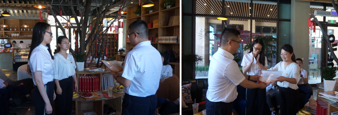 活動(dòng)舉辦當(dāng)天,恰逢黨員袁田同志和仲亞男同志的“政治生日”,為了讓黨員同志們切實(shí)感受到來(lái)自黨組織的溫暖與關(guān)懷,引導(dǎo)廣大黨員進(jìn)一步強(qiáng)化身份意識(shí)、宗旨意識(shí)和責(zé)任意識(shí),交流會(huì)現(xiàn)場(chǎng)還為兩位黨員同志舉辦了一場(chǎng)特別的“政治生日會(huì)”,為她們送上一張?zhí)刂频摹吧召R卡”、一枚新黨徽、一本新黨章,以極富儀式感的活動(dòng)形式,提醒激勵(lì)黨員同志們要時(shí)刻謹(jǐn)記黨員職責(zé),不忘初心、牢記使命,在工作和生活中時(shí)刻以黨員標(biāo)準(zhǔn)嚴(yán)格要求自己,切實(shí)發(fā)揮黨員干部的先鋒模范作用。