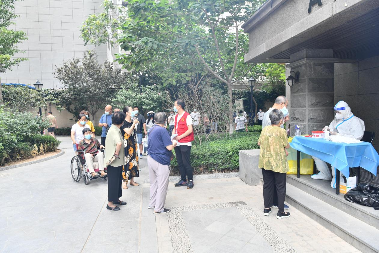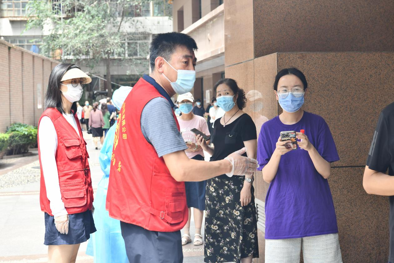 中午時(shí)分,志愿者們頂著38℃的高溫,穿梭在小區(qū)核酸檢測(cè)采集現(xiàn)場(chǎng)、小區(qū)出入口,按照核酸檢測(cè)要求,引導(dǎo)待測(cè)人員佩戴好口罩、保持安全距離、有序排隊(duì)。他們嗓子啞了也顧不上喝一口水,身上的衣服已不知被汗水浸濕了多少次,卻始終沒有一個(gè)人叫苦叫累,依然努力奮戰(zhàn)在核酸采樣第一線,用實(shí)際行動(dòng)展示“奉獻(xiàn)、友愛、互助、進(jìn)步”的志愿精神,詮釋國企擔(dān)當(dāng)。