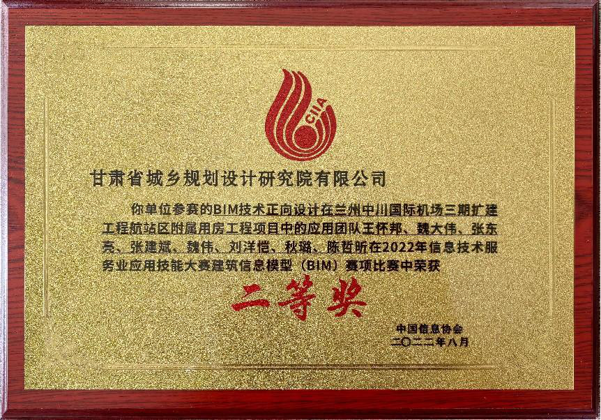近日,甘肅省城鄉(xiāng)規(guī)劃設(shè)計研究院有限公司“BIM技術(shù)正向設(shè)計在蘭州中川國際機場三期擴建工程航站區(qū)附屬用房工程項目的應(yīng)用”榮獲中國信息協(xié)會2022年信息技術(shù)服務(wù)業(yè)應(yīng)用技能大賽二等獎。此次獲獎是繼該BIM應(yīng)用項目榮獲2021年甘肅省第四屆BIM技術(shù)應(yīng)用大賽設(shè)計組一等獎之后,再次摘得的國家獎項,也是規(guī)劃設(shè)計院首次在國家級BIM技術(shù)應(yīng)用賽事中獲獎。