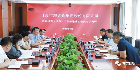 6月13日,甘肅工程咨詢集團黨委委員、副總經(jīng)理劉立昱,董事會秘書柳雷,戰(zhàn)略投資部(改革辦)部長馬靈會一行到招標咨詢集團對戰(zhàn)略投資(改革)工作推進落實情況、董事會建設和運行情況開展專項調(diào)研。