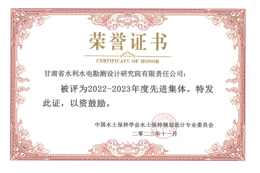 11月5日至7日,中國水土保持學(xué)會2023年年會暨學(xué)術(shù)研討會在蘭州召開。省水電設(shè)計院榮獲中國水土保持學(xué)會2022-2023年度“先進集體”稱號,水保設(shè)計咨詢公司王向明榮獲“先進個人”稱號。1篇論文獲優(yōu)秀論文獎。