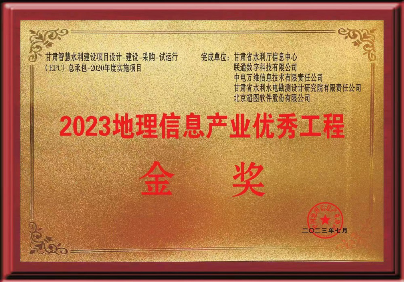 近日,第一屆中國測繪地理信息大會在浙江召開。由省水利廳實施、省水電設計院參與完成的“甘肅智慧水利建設項目設計-建設-采購-試運行(EPC)總承包-2020年度實施項目”榮獲2023中國地理信息產(chǎn)業(yè)優(yōu)秀工程金獎。