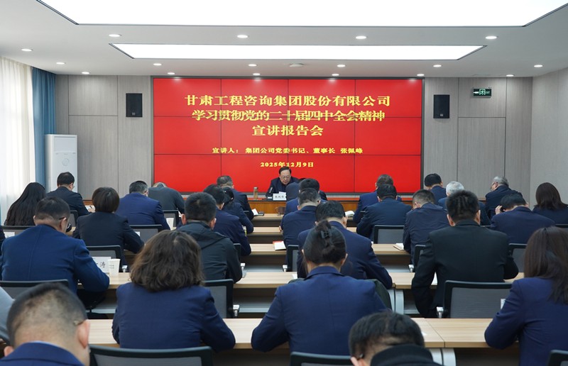 12月9日,甘肅工程咨詢集團(tuán)召開學(xué)習(xí)貫徹黨的二十屆四中全會(huì)精神宣講報(bào)告會(huì)。集團(tuán)公司黨委書記、董事長張佩峰作專題宣講報(bào)告,圍繞全會(huì)重大意義、核心要義及“十四五”發(fā)展成就、“十五五”時(shí)期目標(biāo)任務(wù)等進(jìn)行了系統(tǒng)闡釋,并結(jié)合集團(tuán)實(shí)際提出貫徹落實(shí)的思路舉措。