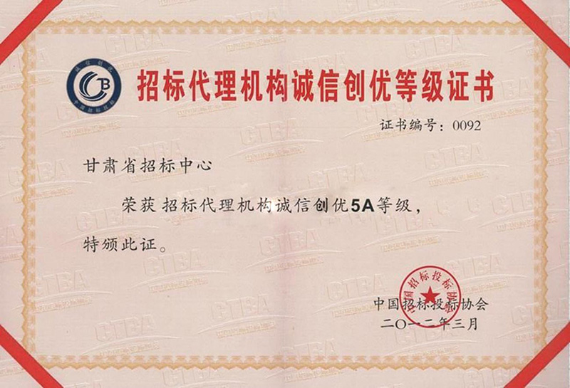 招標(biāo)代理機(jī)構(gòu)誠(chéng)信創(chuàng)優(yōu)登記證書(shū)